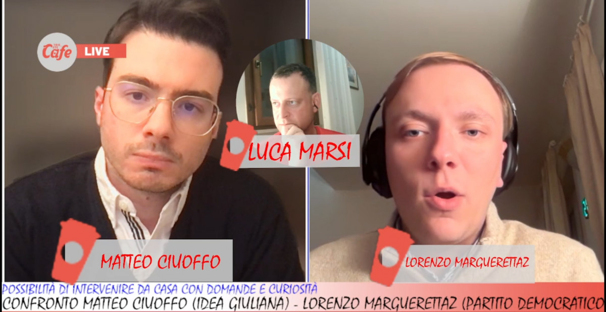 Si è svolto un nuovo appuntamento di Giovani al voto, il format di confronto dedicato alle nuove generazioni, che ha visto protagonisti Matteo Ciuoffo per Idea Giuliana e Lorenzo Marguerettaz per il Partito Democratico, con la conduzione di Luca Marsi. Un dialogo serrato che ha toccato temi concreti della vita quotidiana e della visione futura di Trieste, dal commercio domenicale alla possibile apertura di un McDonald’s sulle Rive, fino al destino del Salone degli incanti.