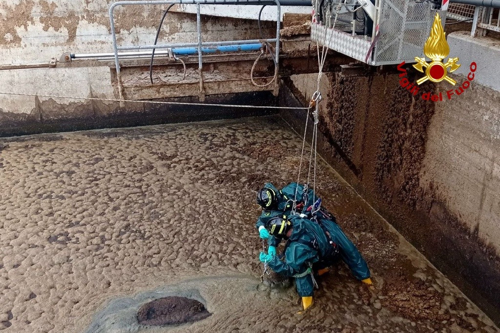 Verso le ore 08:30 di oggi 9 aprile 2026, la squadra dei Vigili del fuoco del Distaccamento di Maniago (PN), con il supporto dell'autoscala e dell'autogru provenienti dalla sede centrale del comando di Pordenone, sono intervenuti per soccorrere una bovina da latte, di circa 30 mesi, che era caduta all'interno di una grande vasca di liquami in un'azienda agricola in località Dandolo di Maniago (PN). L'animale era scivolato nella vasca profonda 4 metri ed era immerso per circa 2 metri all'interno dei liquami rischiando di annegare. Utilizzanto apposite tute protettive e applicando tecniche SAF (Speleo Alpino Fluviale), i Vigili del Fuoco vincolandosi all'autoscala si sono calati all'interno della vasca per aiutare l'animale a respirare per poi imbragarlo e sollevarlo con l'autogru. Una volta riportata a terra, la bovina veniva visitata dal personale veterinariopresente sul posto.