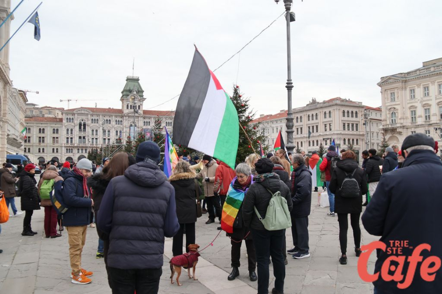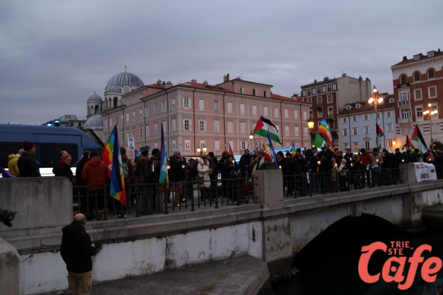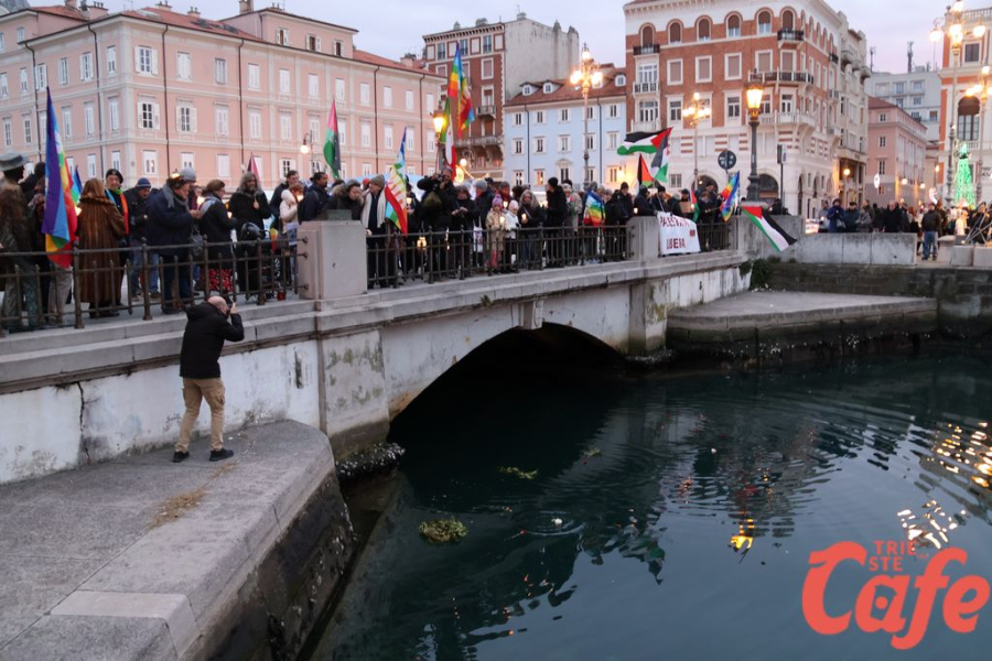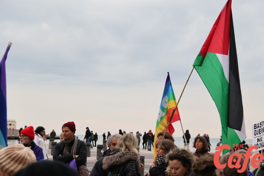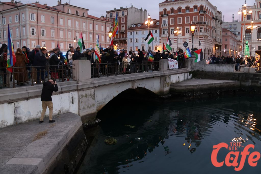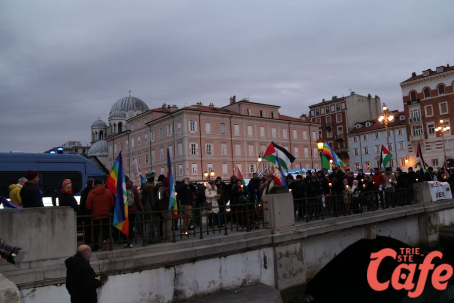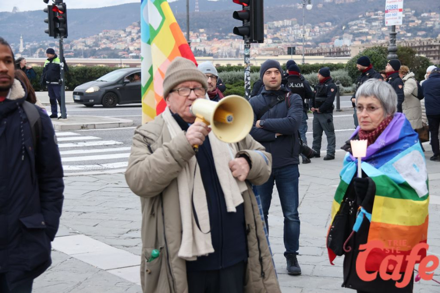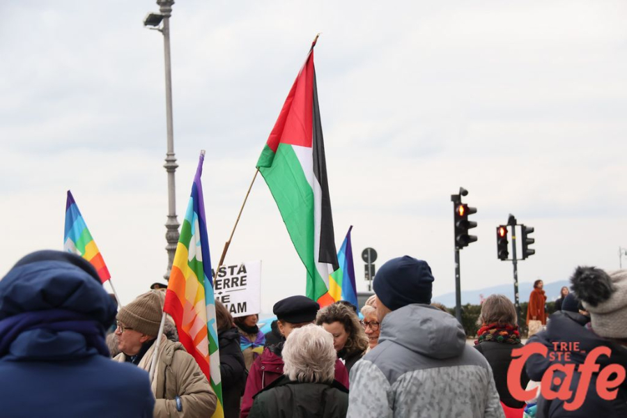 Il ritrovo è avvenuto alle 15 in piazza Unità d’Italia, davanti al Municipio, accanto alla targa delle leggi razziste. Da lì la marcia si è snodata attraverso diverse tappe dal forte valore simbolico, con una prima sosta davanti alla chiesa di San Nicolò, seguita dal passaggio in piazza Ponterosso, accanto alla statua di James Joyce. In questo punto è stato ricordato il tema delle migrazioni e delle migliaia di vittime morte annegate nel Mediterraneo, con fiori deposti in mare in segno di memoria.