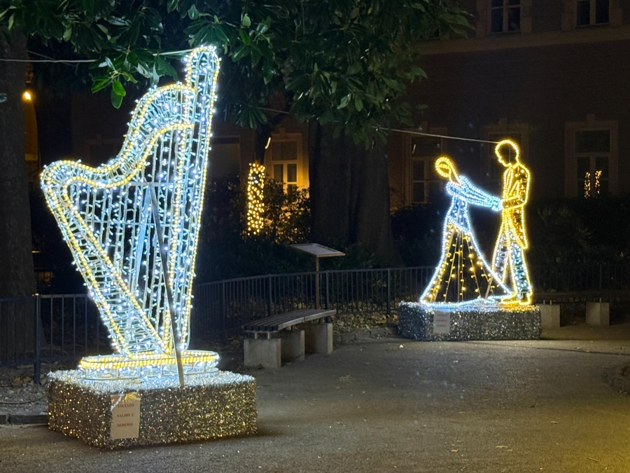 La notte triestina si è accesa di poesia. Piazza Hortis, uno dei luoghi più amati e simbolici della città, ha svelato al pubblico il suo nuovo volto natalizio: un vero e proprio salotto di luce, dove strumenti musicali, figure danzanti e giochi scenografici compongono un tableau vivant capace di rapire lo sguardo e il cuore.