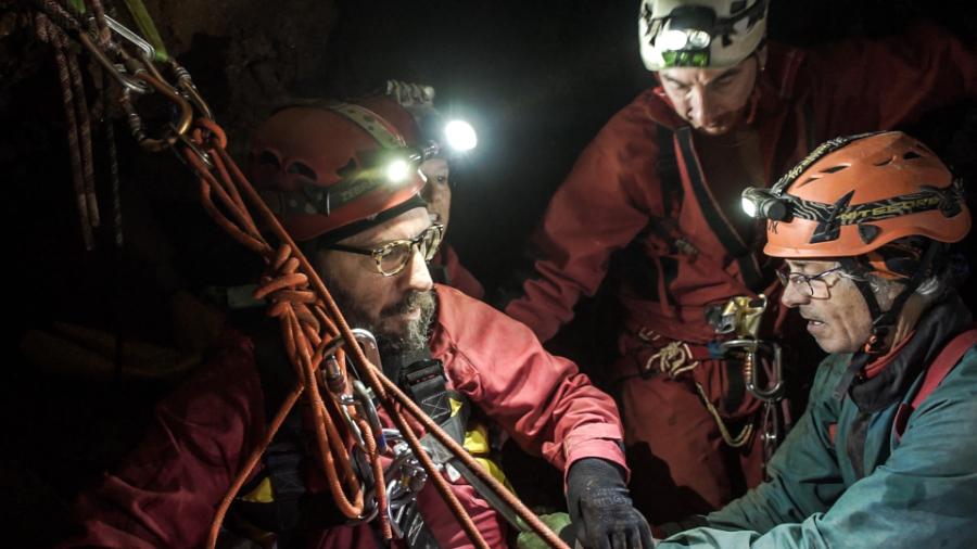 Per affrontare i tratti più impegnativi del percorso, gli speleologi hanno utilizzato tecniche d’avanguardia: il paranco per la discesa e la risalita del primo pozzo, la tecnica del contrappeso per i successivi passaggi verticali, e una teleferica su corde statiche lungo il piano inclinato che porta alla sala terminale.