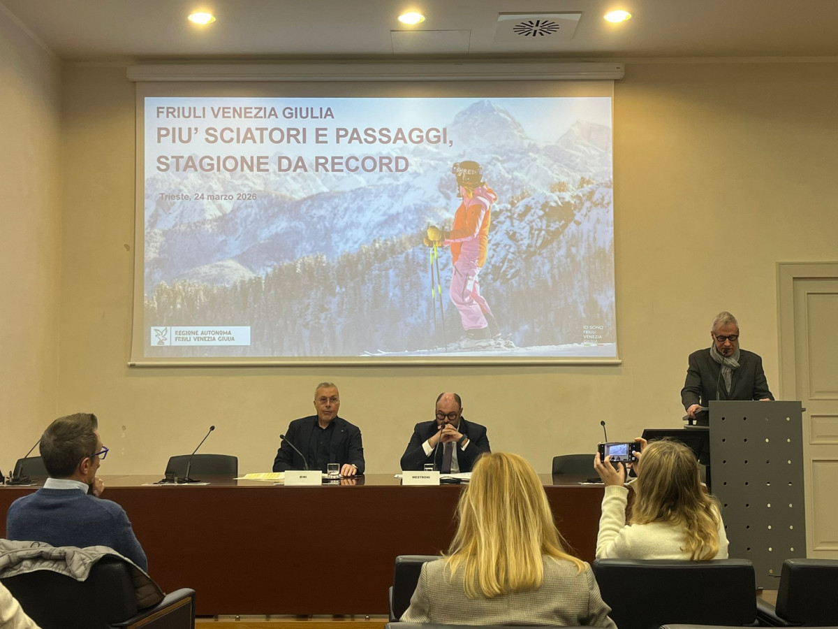 Stagione sciistica "da record" per il Friuli Venezia Giulia: per la prima volta nei poli della regione sono stati superati i 10 milioni di passaggi di sciatori. Il dato è stato diffuso oggi a Trieste durante una conferenza stampa di bilancio della stagione. Secondo l'assessore regionale al Turismo, Sergio Emidio Bini, i risultati derivano "da una programmazione che ormai va avanti da otto anni. E seppure l'asticella viene alzata anno su anno, i record non si fanno attendere. Ci fa piacere vedere che un po' tutte le località sciistiche del Fvg si sono contraddistinte per il segno più. Questo testimonia quanto le nostre piste siano amate, e anche la qualità dei servizi offerti agli sciatori. C'è ancora strada da fare - ha aggiunto - stiamo investendo ulteriormente non solo sugli impianti, ma soprattutto sui servizi, su strutture ricettive, alberghi, alberghi diffusi, appartamenti a uso turistico, insomma tutto ciò che completa l'offerta nei nostri poli montani". Nella prossima stagione possibile un aumento dei prezzi dello skipass. "Abbiamo ormai da qualche anno le tariffe invariate, molto basse, forse troppo basse - ha detto ancora l'assessore - ragioneremo per la prossima stagione, per un eventuale ritocco ma resteremo, ve lo garantisco, i più convenienti dell'arco alpino". Quanto ai dati, sono stati oltre 960mila i primi ingressi nella stagione 2025/2026, con un aumento di sciatori sulle piste, rispetto allo scorso anno, del +6,3%. Cresciuti anche gli incassi (+5%) e i ticket venduti (+5%). Numeri ricordati dal direttore generale di PromoTurismoFvg, Iacopo Mestroni. In totale sono state 122 le giornate di sci, con più di venti eventi organizzati nei sei poli e oltre 500 attività outdoor sull'intero arco alpino regionale. Quanto alle performance dei singoli comprensori, l'aumento più marcato è per Forni di Sopra, a seguire Piancavallo, Tarvisio, Sappada-Forni Avoltri, Ravascletto-Zoncolan e Sella Nevea.
