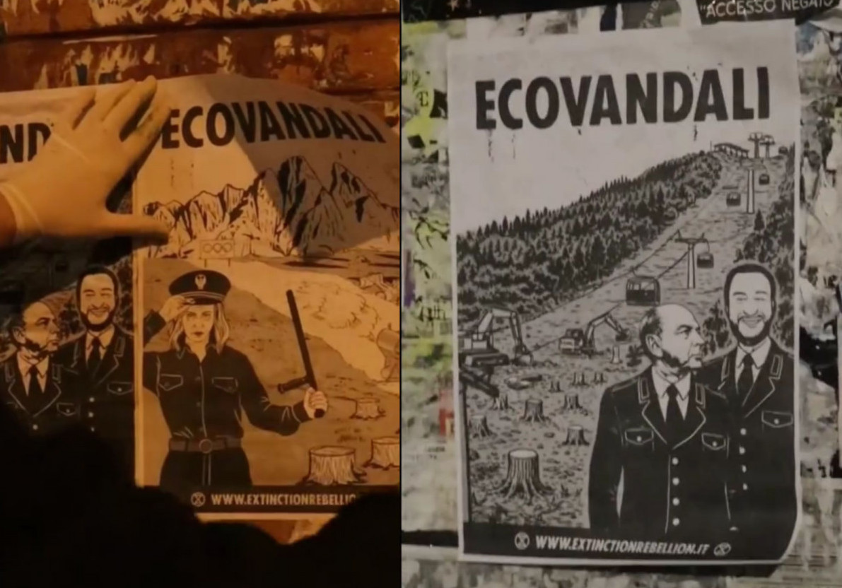 Trieste, blitz di Extinction Rebellion: manifesti "Ecovandali" con i volti di Meloni, Salvini e Dipiazza