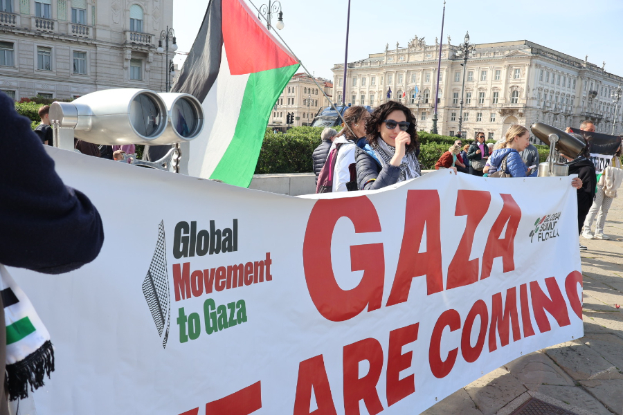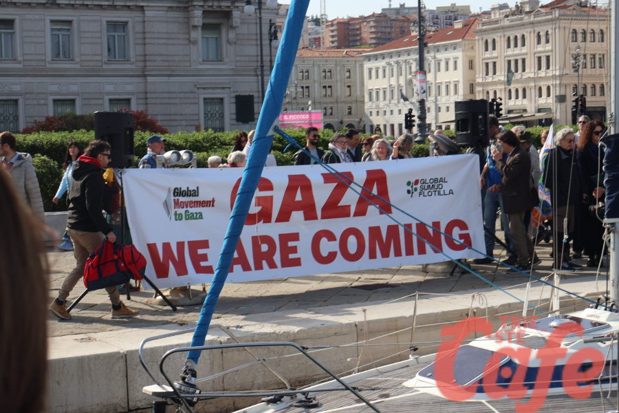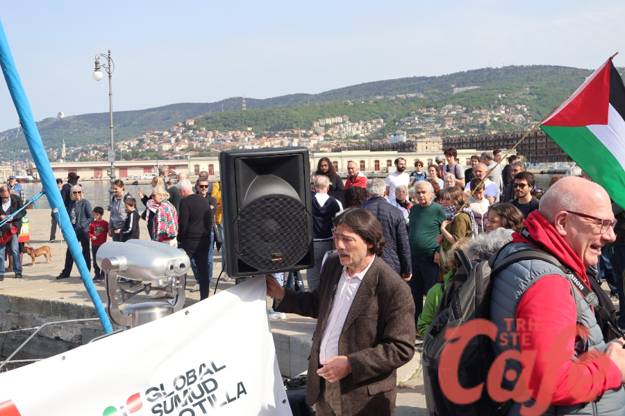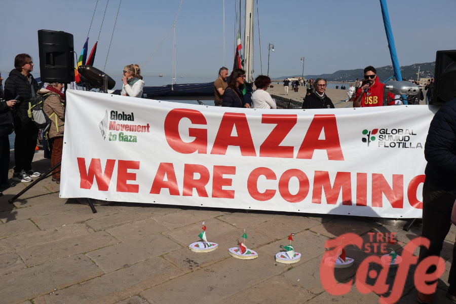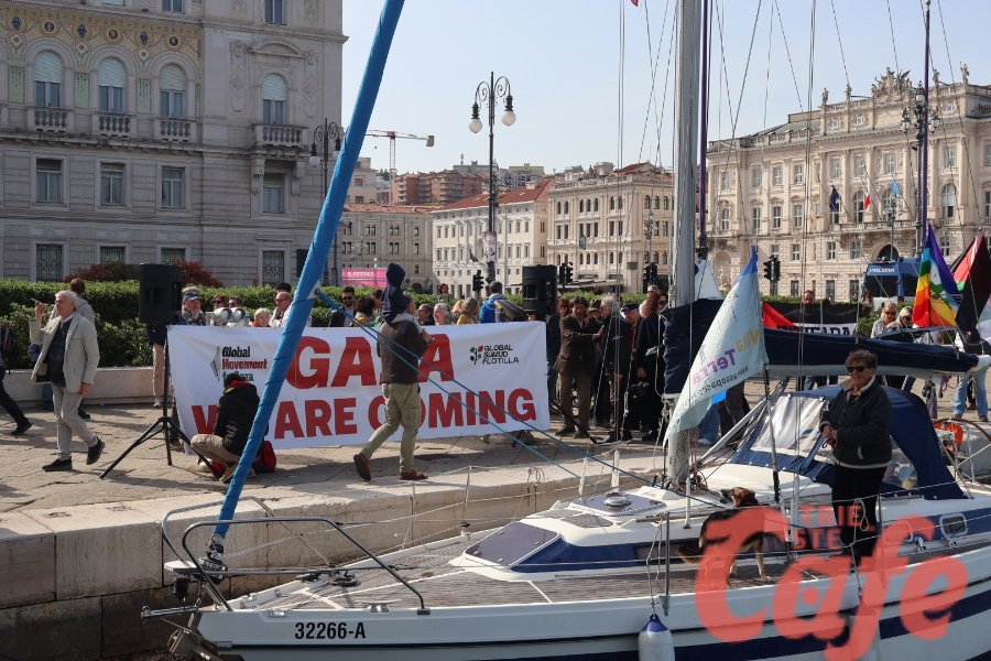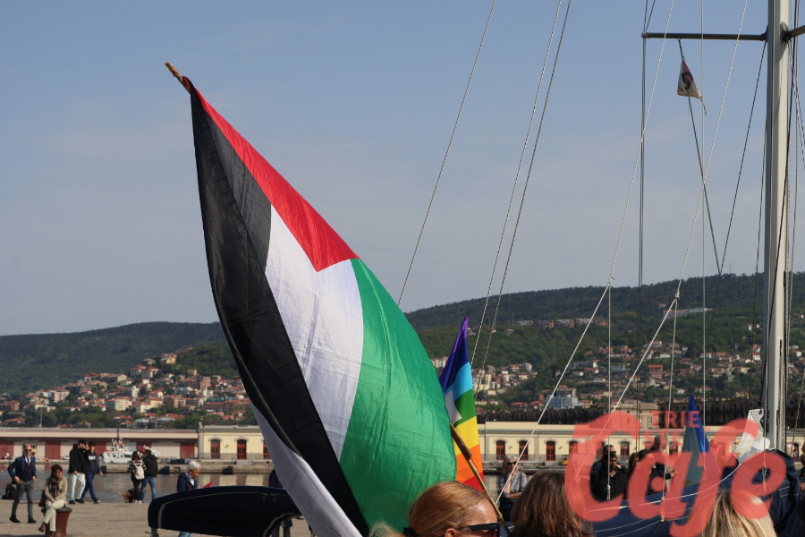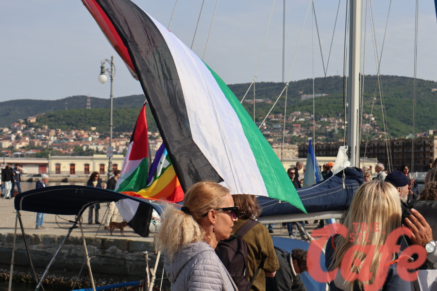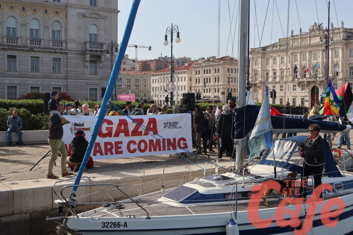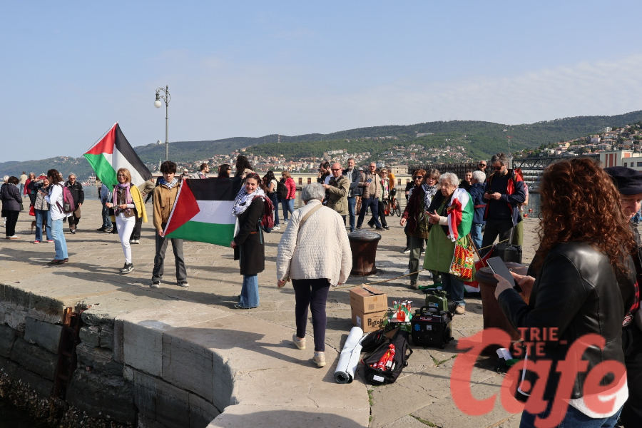 Circa 200 triestini si sono ritrovati all’inizio del Molo Audace per partecipare a un’iniziativa pubblica legata alla missione internazionale diretta verso Gaza.