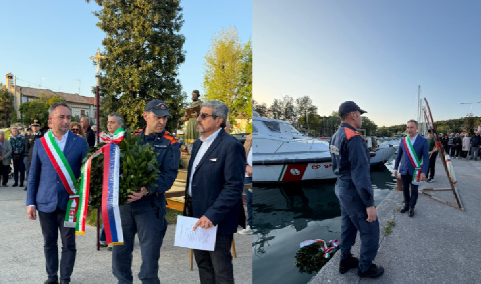 Il momento centrale della celebrazione è stato rappresentato dalla deposizione della corona in mare, gesto simbolico di commemorazione legato alla tradizione e al rapporto profondo con il mare.