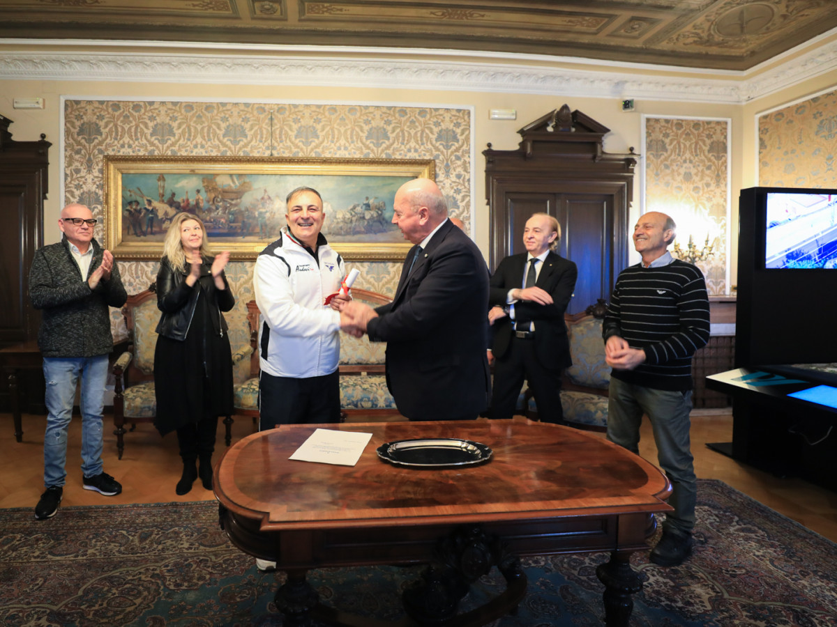 Il sindaco Dipiazza ha conferito il sigillo bronzeo al motociclista Aldo Amabile