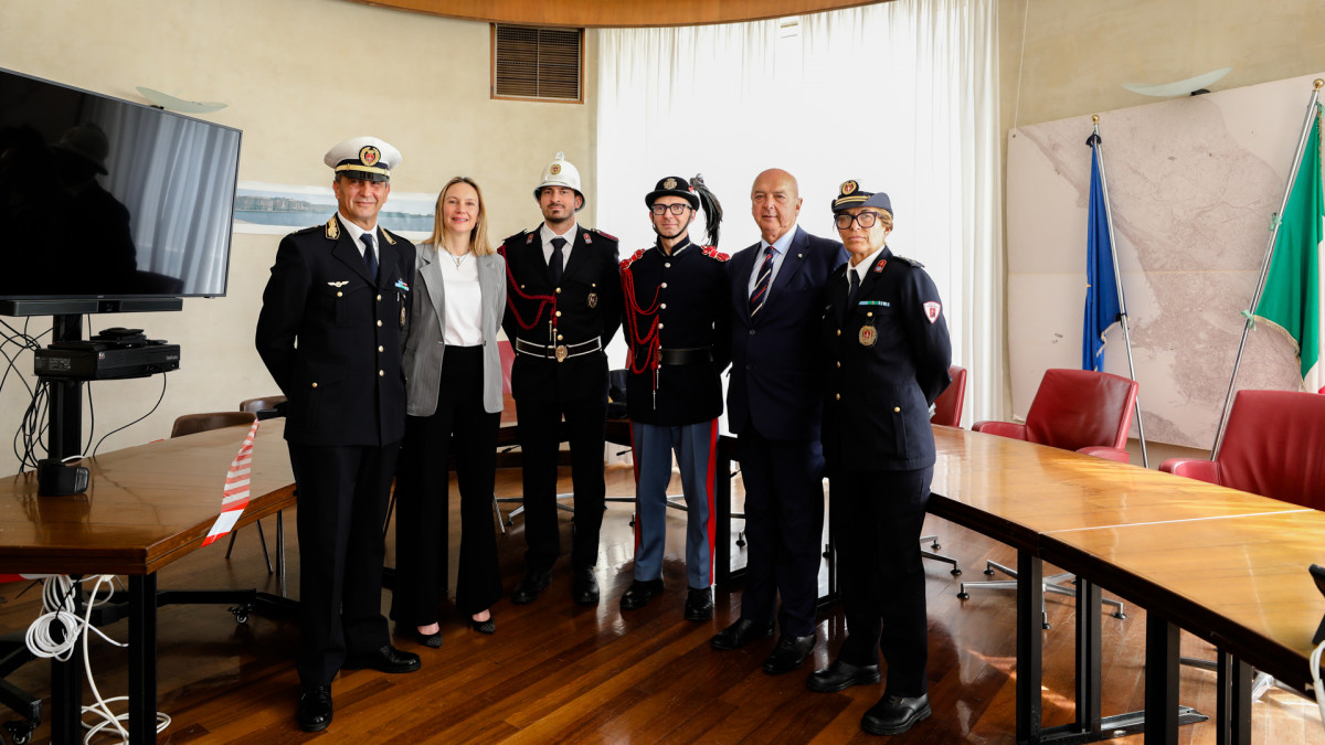 Sin dalla sua costituzione la Polizia Locale, in occasione di cerimonie civili, religiose e militari, ha il compito e l’onore di rappresentare la città, portando il suo Gonfalone, decorato della medaglia d’oro al valor militare: il Nucleo Cerimoniale e Rappresentanza nasce dall'esigenza di un gruppo ufficiale di rappresentanza del Comune di Trieste (e della sua Polizia Locale) che incarni anche visivamente il passato e la storia della città. Attento alla forma – che qui è sostanza -, dalla divisa al portamento, all’assetto di marcia. Questa mattina alla presenza del sindaco, Roberto Dipiazza, l'assessore alle Politiche della sicurezza cittadina, Caterina de Gavardo ha illustrato le caratteristiche del Nucleo Cerimoniale della Polizia Locale. Presenti anche l'ispettore superiore della Polizia Locale, referente del Nucleo Cerimoniale, Helga Doerfler, il vice commissario supervisore del Nucleo Cerimoniale, Stefano Lapel, l'assistente Stefano Maar e l'agente scelto Luca Caramuta.