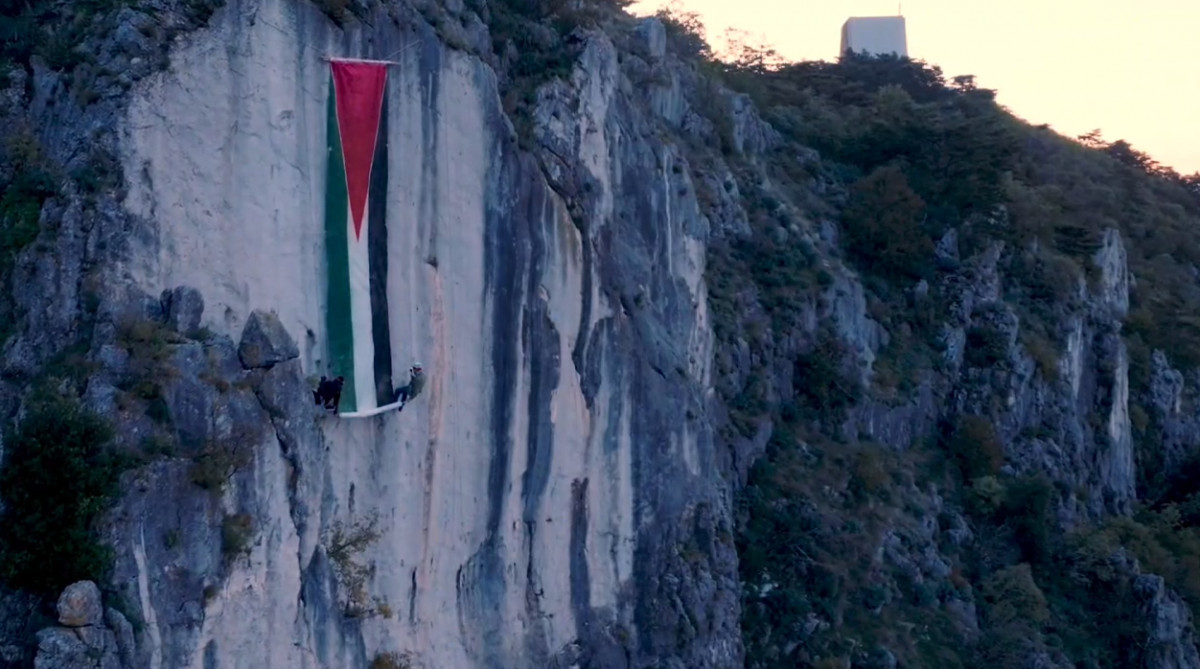 Blitz pro Palestina durante la Barcolana: maxi bandiera appesa sul costone carsico