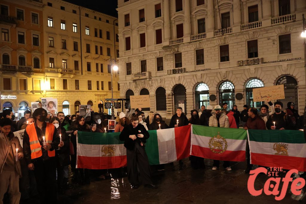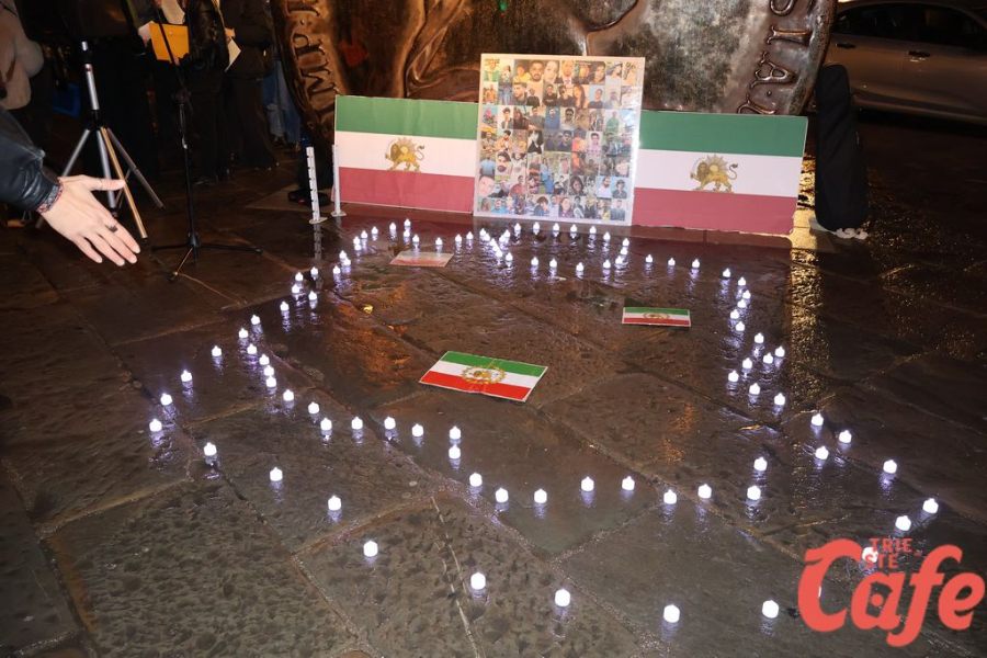 Le candele accese in piazza hanno rappresentato visivamente quel filo tra chi vive lontano e chi, secondo quanto espresso nel testo, subisce repressioni e violenze. “La nostra voce è la voce del popolo iraniano” è una delle frasi conclusive del documento, diventata simbolicamente il messaggio della serata triestina.