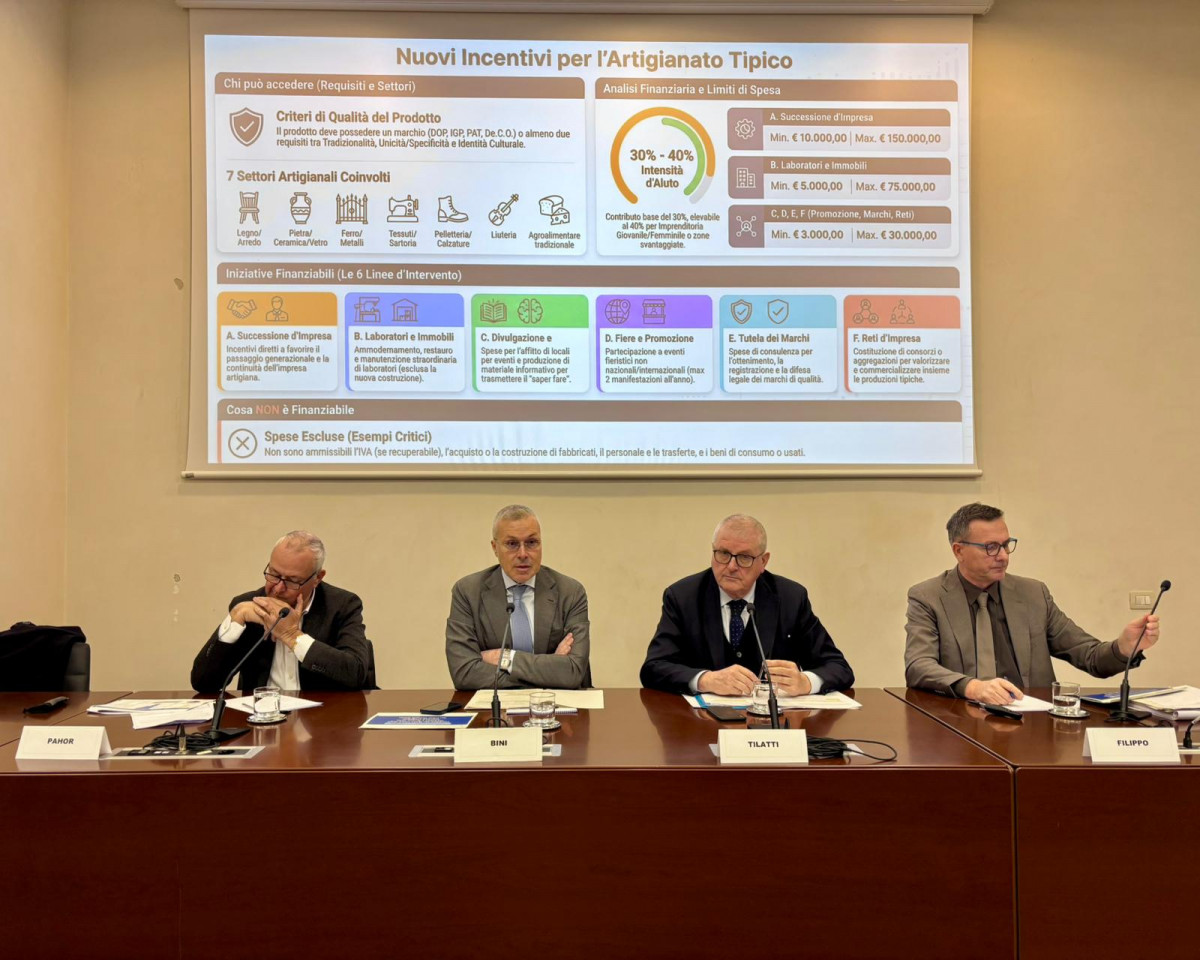 Tra le spese ammissibili a contributo figurano: la successione dell'impresa artigiana; la realizzazione di lavori di ammodernamento e ristrutturazione di immobili laboratori artigiani; la trasmissione delle competenze artigiane, mediante il contributo alle spese sostenute per l'affitto di locali o per l'occupazione di aree pubbliche che ospitino incontri ed esposizioni delle lavorazioni create dall'imprenditore artigiano; la partecipazione a eventi fieristici o altre manifestazioni promozionali; l'ottenimento o la tutela dei marchi di qualità; la costituzione di reti d'impresa, consorzi o altre forme di aggregazione finalizzate alla valorizzazione delle produzioni tipiche. Durante l'incontro, l'esponente della Giunta ha illustrato i risultati record raggiunti dal comparto nel 2025, sottolineando come il sostegno regionale sia triplicato dal 2018 passando da 4,5 milioni di euro ai 13,8 milioni di euro destinati nell'ultimo anno. I dati gestiti dal Cata Fvg per il 2025 parlano di 2.748 domande pervenute (un picco storico) che hanno generato investimenti totali da parte delle imprese per 42,8 milioni di euro. "Questo significa che ogni euro di finanziamento pubblico è stato capace di attrarne oltre 2,7 di investimento privato, a testimonianza della straordinaria vitalità del settore", ha osservato l'assessore.