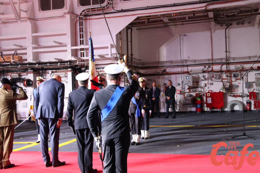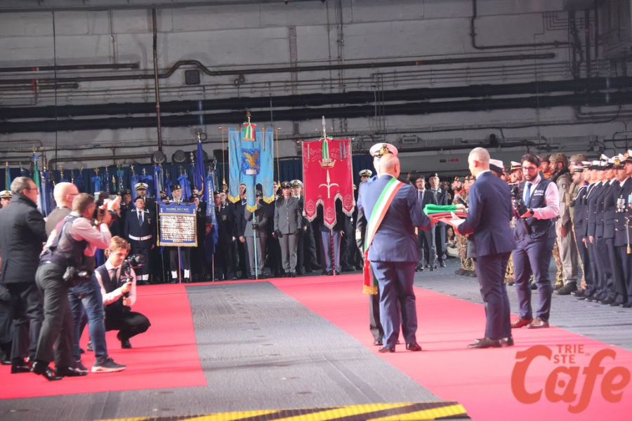 Nel giorno in cui la città celebra il 71° anniversario del ritorno all’Italia, il governatore del Friuli Venezia Giulia, Massimiliano Fedriga, ha partecipato alla cerimonia di consegna della Bandiera di Combattimento a Nave Trieste, la nuova ammiraglia della Marina Militare.