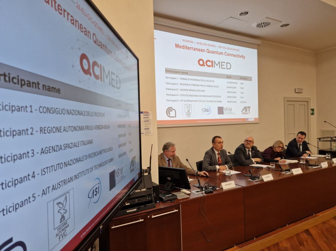 Il progetto, coordinato dal Consiglio nazionale delle ricerche (Cnr) e realizzato in partnership con la Regione, nasce come un vero sforzo congiunto di istituti di ricerca, enti territoriali e partner tecnologici, con l'obiettivo di contribuire in modo decisivo alla futura rete EuroQci, la rete di comunicazione europea ultrasicura basata sulla fisica quantistica. "Diventando partner di Qcimed, il Friuli Venezia Giulia continua a potenziare le proprie infrastrutture innovative, fondamentali per la rete quantistica italiana e internazionale - ha rimarcato Callari -. La realizzazione del nuovo collegamento in fibra fino al valico di Coccau e l'utilizzo della Rete pubblica regionale testimoniano un impegno concreto verso la connettività transfrontaliera".