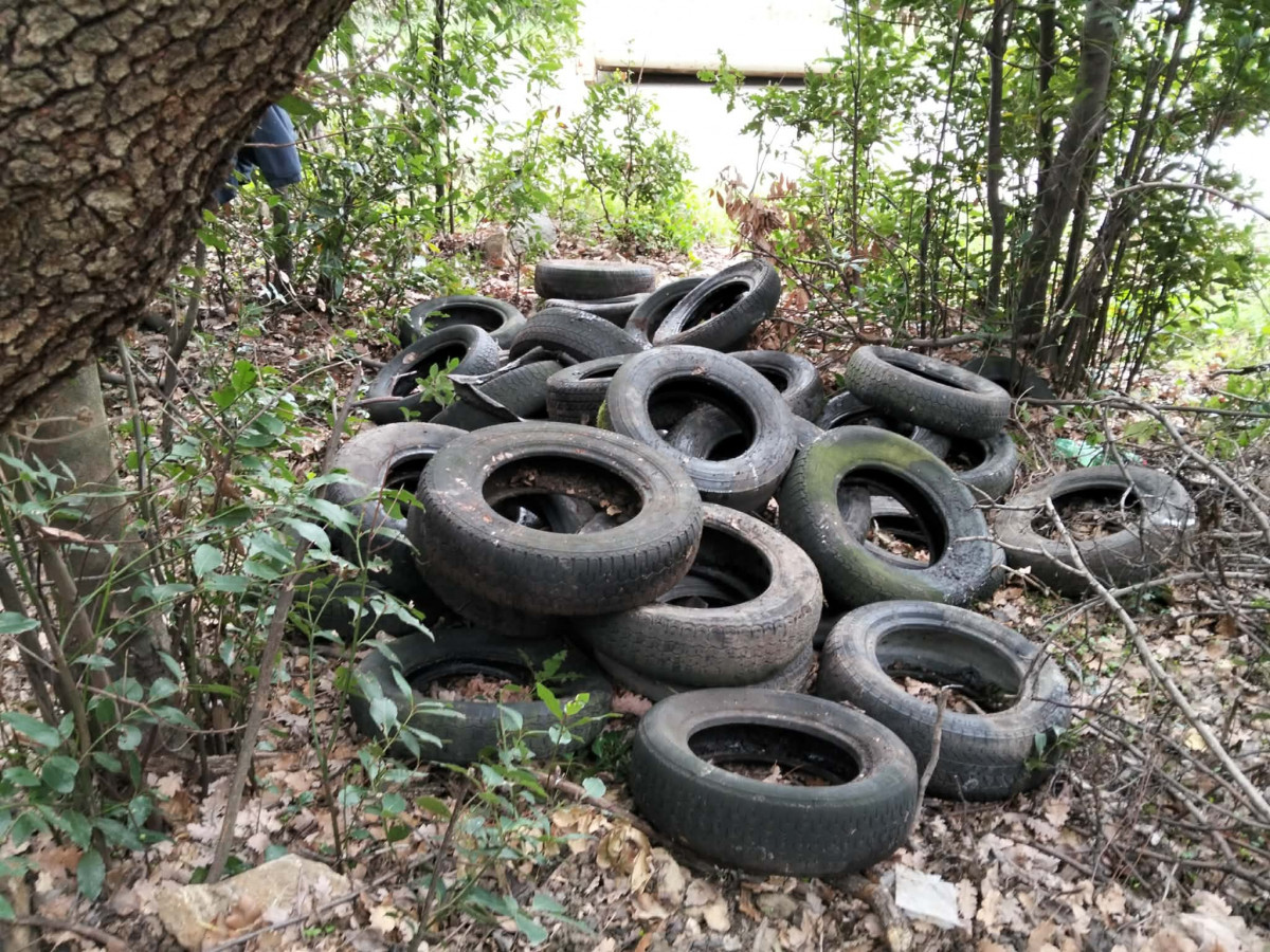 Nel corso dell’operazione sono stati recuperati circa 150 pneumatici, sparsi tra la vegetazione e il sottobosco.