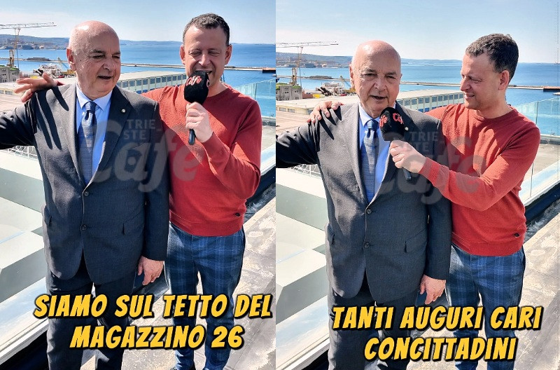 Un messaggio simbolico, con lo sguardo rivolto al futuro e i piedi ben piantati su uno dei luoghi destinati a cambiare volto alla città. Il sindaco di Trieste Roberto Dipiazza ha scelto il tetto del magazzino 26 per rivolgere gli auguri di Pasqua ai triestini, in uno scenario che presto ospiterà un ristorante panoramico.