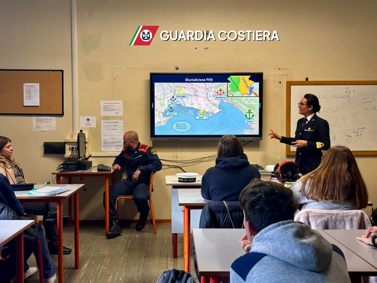 Nei giorni scorsi la Capitaneria di Porto di Trieste ha incontrato più di duecento studenti delle classi prime del Liceo Classico e Linguistico Statale Francesco Petrarca e dell’Istituto Comprensivo Italo Svevo, portando nelle aule un percorso educativo dedicato alla sicurezza e al rispetto del mare. Una presenza che rientra nella missione più ampia della Guardia Costiera, impegnata nel far conoscere alle nuove generazioni il valore dell’ambiente marino e le attività quotidiane svolte per proteggerlo.