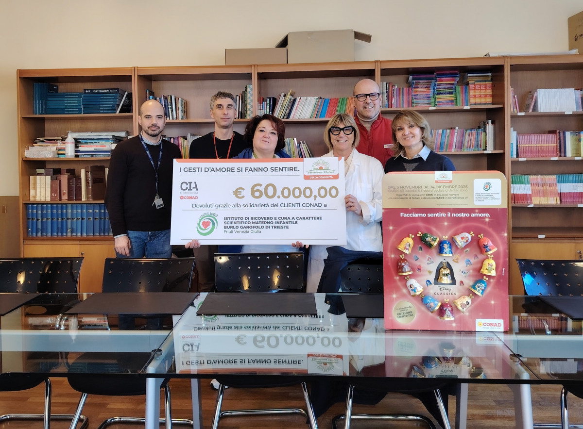 Si è ufficialmente conclusa l’ormai tradizionale iniziativa solidale natalizia I gesti d’amore si fanno sentire che, grazie alla generosità dei clienti dei punti vendita del Friuli Venezia Giulia diCommercianti Indipendenti Associati – Conad, ha permesso di devolvere all’IRCCS materno – infantile Burlo Garofolo l’importante somma di 60mila euro.