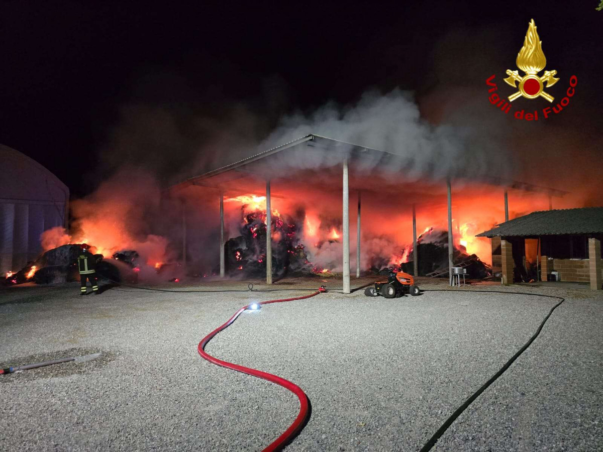 Gruaro, incendio in un deposito di fieno di un’azienda agricola