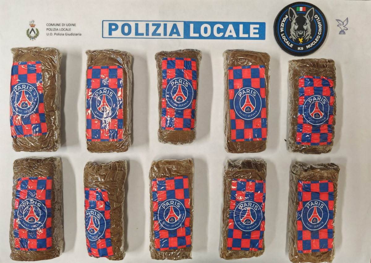 Nei giorni scorsi la Polizia Locale di Udine, con il supporto dell’Unità Cinofila, ha portato a termine una importante operazione antidroga che ha condotto al sequestro di oltre un chilogrammo di hashish, destinato al mercato illegale cittadino.