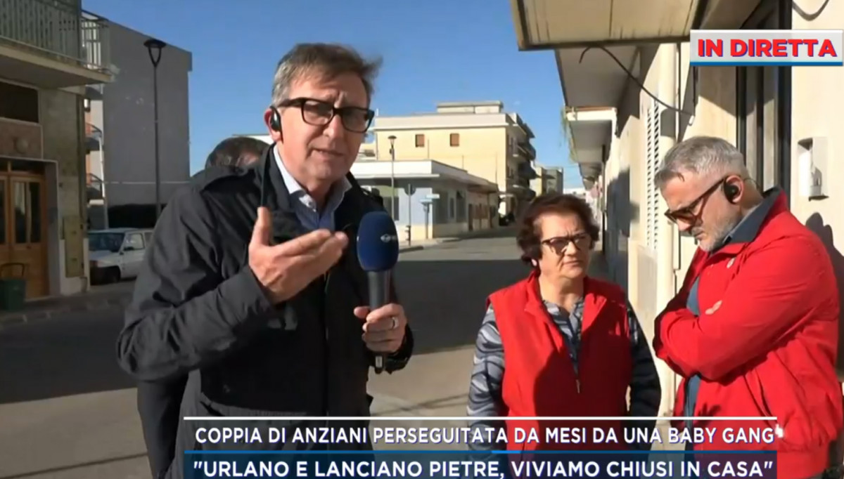 Una storia di paura e solitudine arriva da Statte, piccolo comune in provincia di Taranto, dove due anziani vivono da anni un incubo quotidiano. A raccontarla è “Mattino 5”, il programma di Canale 5 condotto da Federica Panicucci, che nella puntata di oggi ha acceso i riflettori su un caso emblematico di stalking di gruppo da parte di una baby gang.