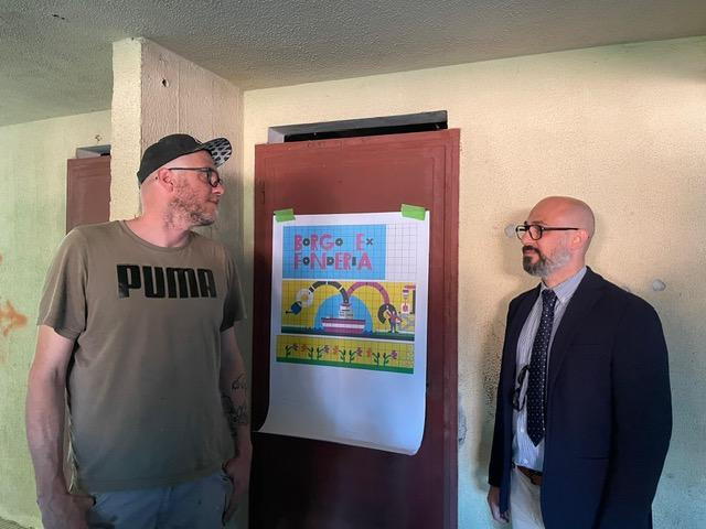 Nel pomeriggio di ieri, lunedì 27 aprile, il Presidente di Ater Trieste, Daniele Mosetti, ha visitato il cantiere per la realizzazione del murales partecipato presso la Microarea a Borgo ex Fonderia, a Muggia, nell’ambito del progetto “Educare alla street art”, in uno spazio in via dei Meccanici messo a disposizione dall’Azienda. Si tratta di un’iniziativa avviata nel 2025 e promossa dal Comune di Muggia e dalla Polizia Locale, con il coordinamento del Comandante Roberto Dell’Osto, in collaborazione con La Collina Cooperativa Sociale. Il percorso unisce creatività, educazione civica e riflessione sociale in un ciclo di incontri gratuiti aperti alla cittadinanza: l’obiettivo è quello di far scoprire la street art non solo come forma di espressione artistica e culturale, ma anche come occasione di rispetto e cura degli spazi pubblici. In particolare, il progetto prevede il coinvolgimento diretto di un gruppo di studenti della Scuola Secondaria di primo grado “N. Sauro”: attraverso incontri, momenti di confronto e attività pratiche, i ragazzi sono accompagnati in un percorso multidisciplinare che consente loro di esplorare il rapporto tra arte e legalità, sviluppando una maggiore consapevolezza del valore del territorio e del confine tra espressione artistica e atti illegali.