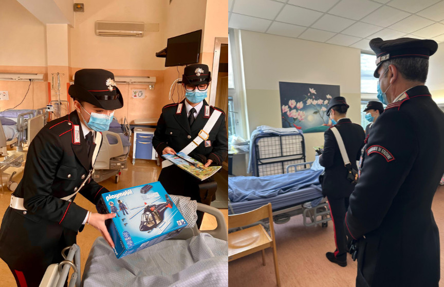 I militari dell’Arma hanno consegnato ai piccoli pazienti gadget, libri, matite, quaderni e fumetti ispirati alla Benemerita, pensati per regalare un momento di leggerezza a chi, per motivi di salute, è costretto a trascorrere le festività natalizie lontano da casa. Un gesto semplice, ma capace di lasciare un segno profondo in una giornata che per molti bambini è diventata improvvisamente speciale.