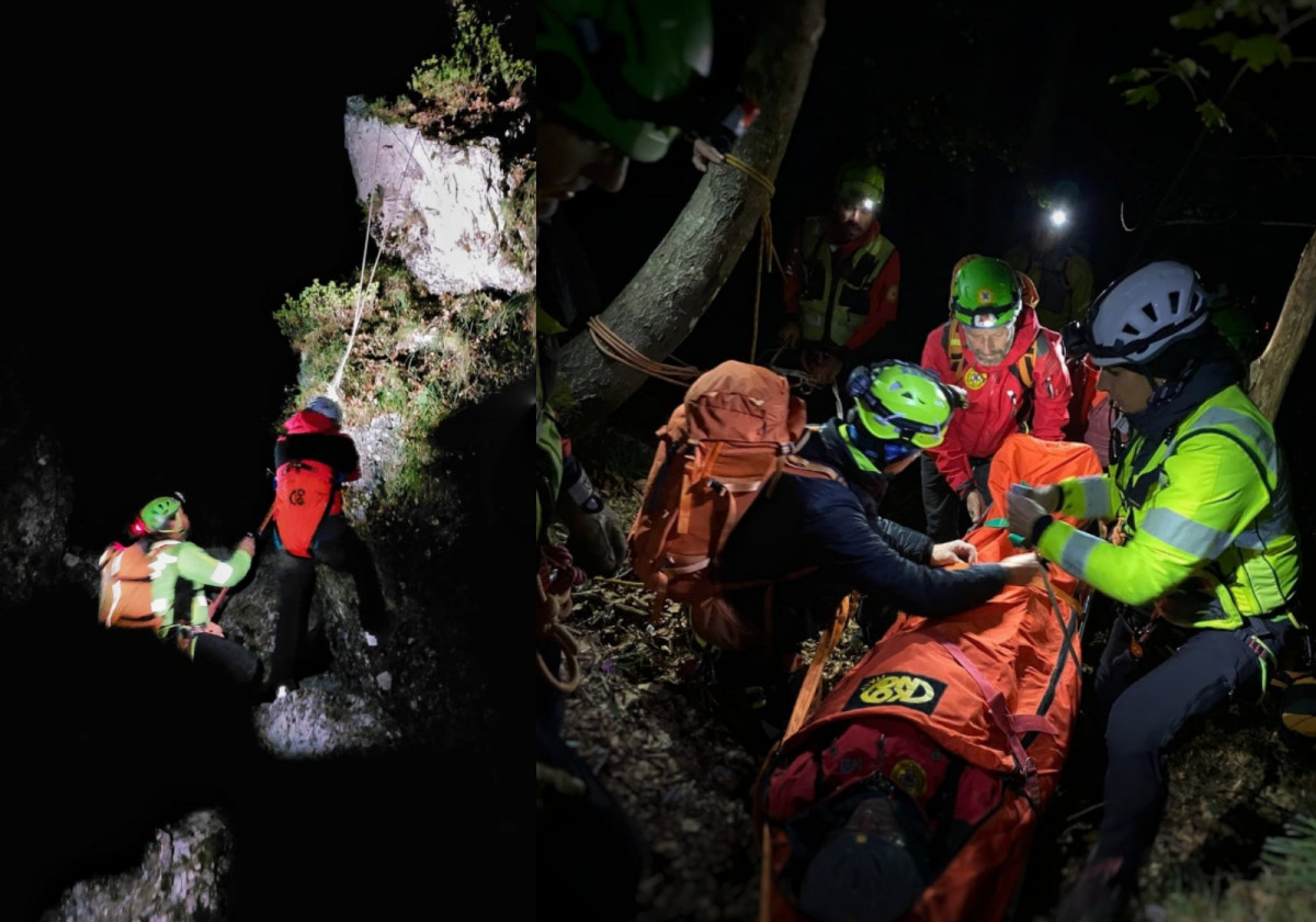 La scarsissima luce e l’impossibilità di far intervenire l’elicottero hanno reso le operazioni particolarmente complesse. Intorno alle 22 i soccorritori sono riusciti a raggiungere l’uomo in condizioni più critiche, infreddolito e spossato. È stato adagiato in barella e trasportato a spalle lungo un terreno ripido e boscoso, attrezzando corde fisse e paranchi per garantire la massima sicurezza.