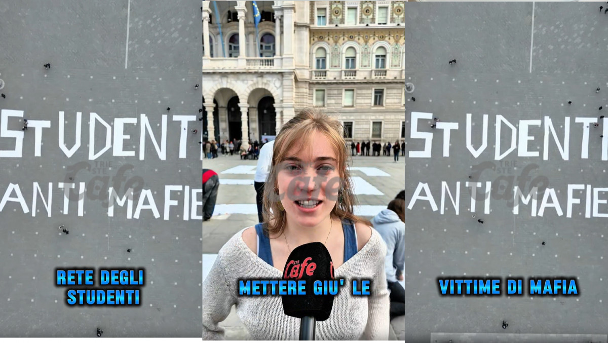 L’iniziativa, organizzata dalla Rete degli Studenti Medi, ha portato nel cuore di Trieste una scritta chiara e potente: “studenti antimafia”, composta con lettere di carta direttamente sulla piazza.