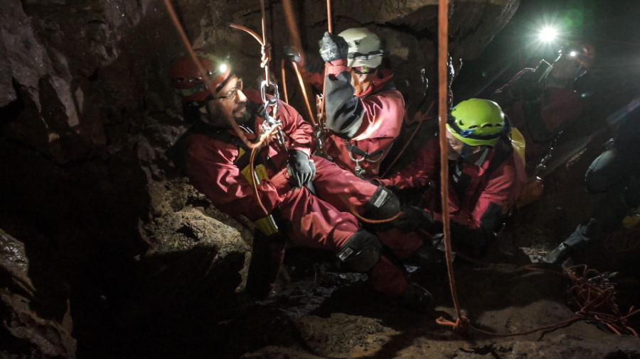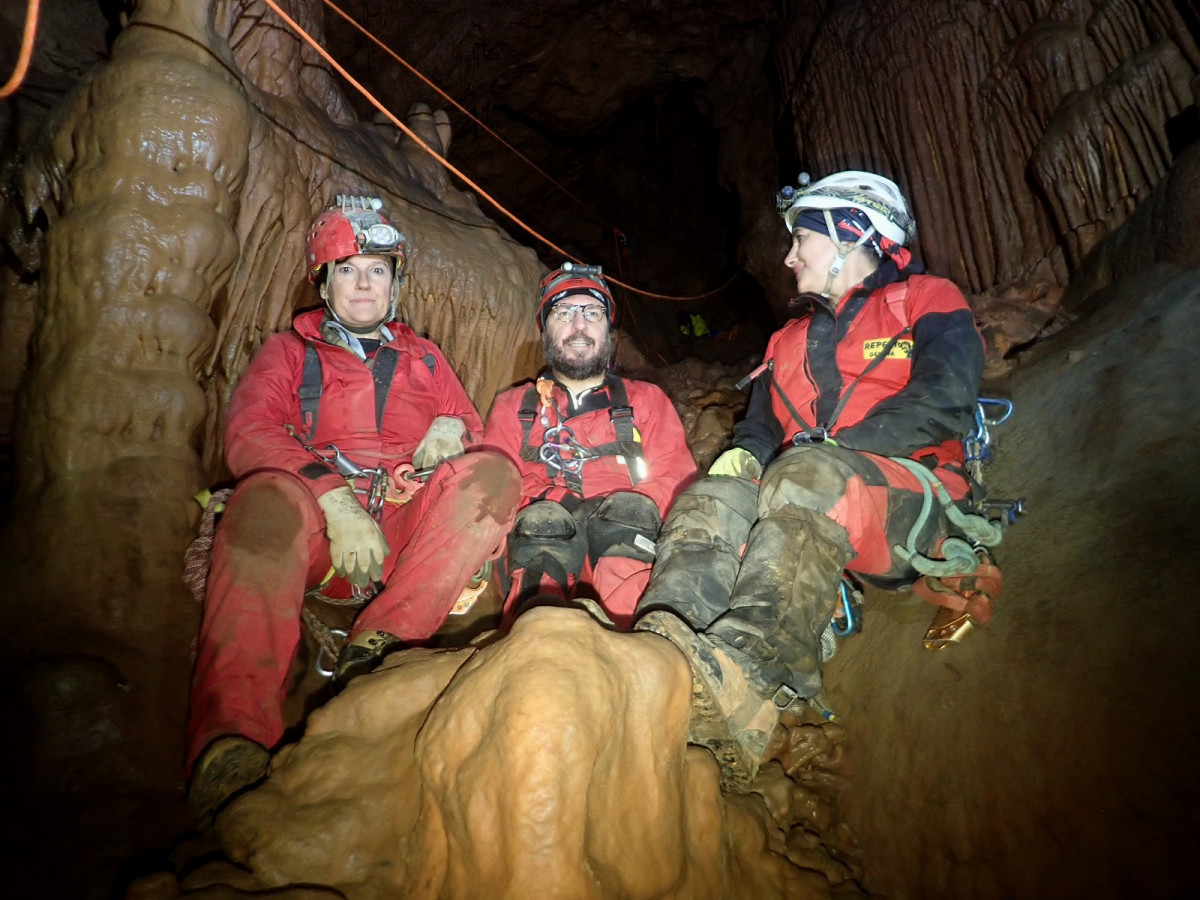 Per affrontare i tratti più impegnativi del percorso, gli speleologi hanno utilizzato tecniche d’avanguardia: il paranco per la discesa e la risalita del primo pozzo, la tecnica del contrappeso per i successivi passaggi verticali, e una teleferica su corde statiche lungo il piano inclinato che porta alla sala terminale.