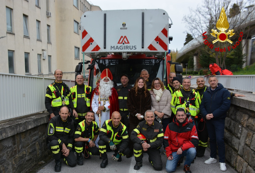 San Nicolò si cala dal cielo: i Vigili del Fuoco portano gioia ai bambini del Burlo Garofolo