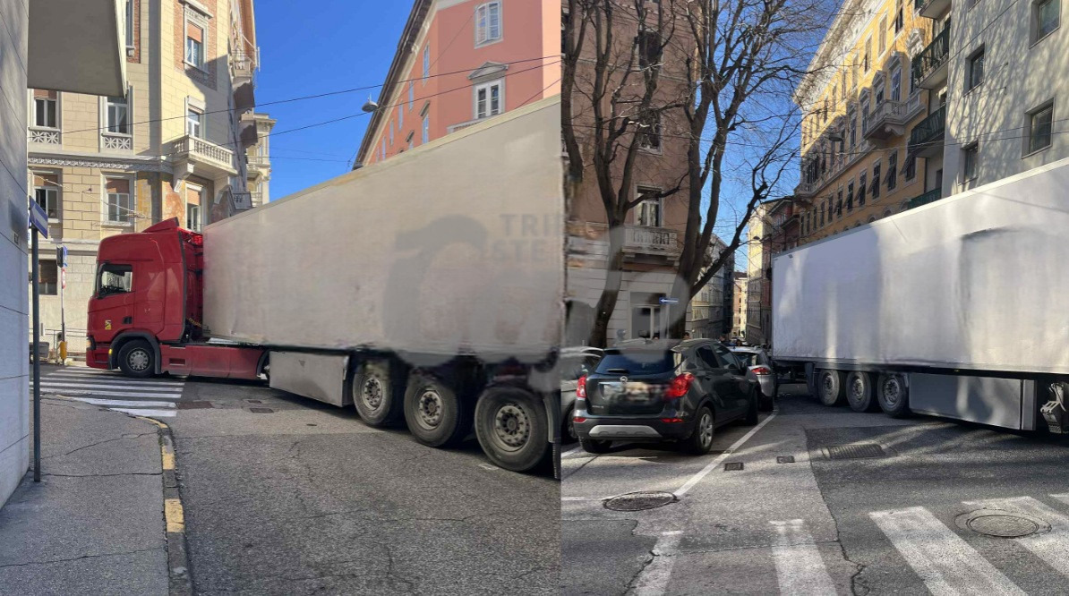 Nel cuore della mattinata, quando il traffico cittadino scorre già a ritmo sostenuto, un errore di valutazione è bastato a trasformare un incrocio in un imbuto. Attorno alle 10.30 di mercoledì 31 dicembre 2025, tra via Commerciale e via Rittmeyer, un Tir di grandi dimensioni ha tentato una manovra che si è rivelata subito impossibile, restando incastrato tra la carreggiata e le auto in sosta.