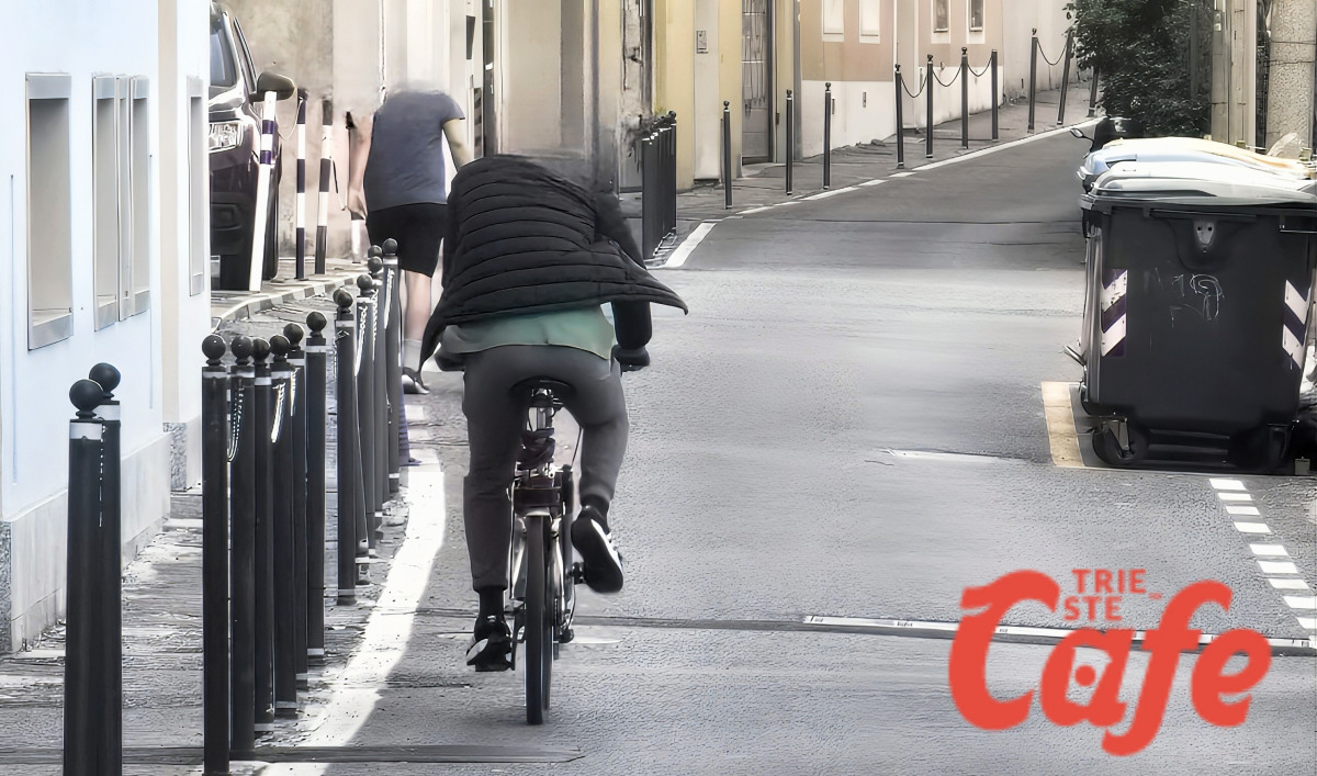 Trieste, ciclista contromano in via del Veltro: scena pericolosa in pieno giorno