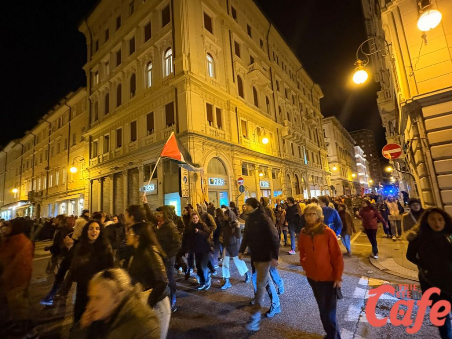 Poco dopo l’inizio del presidio in Piazza della Borsa, la mobilitazione si è trasformata in un corteo che ha attraversato le vie del centro di Trieste. Centinaia di partecipanti, sventolando bandiere e mostrando cartelli, hanno percorso Corso Italia e via San Spiridione - Filzi,via XXX Ottobre, piazza Oberdan, via Coroneo, via Carpison, via Battisti, viale XX Settembre, Corso Italia, piazza Unità portando la protesta oltre il perimetro della piazza e dando ulteriore visibilità all’appello di sostegno alla Flotilla.