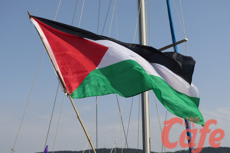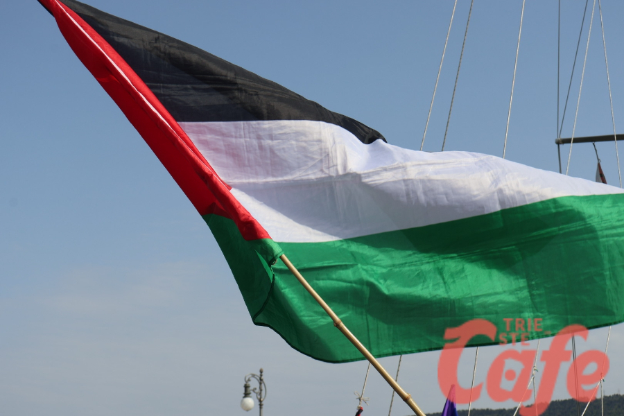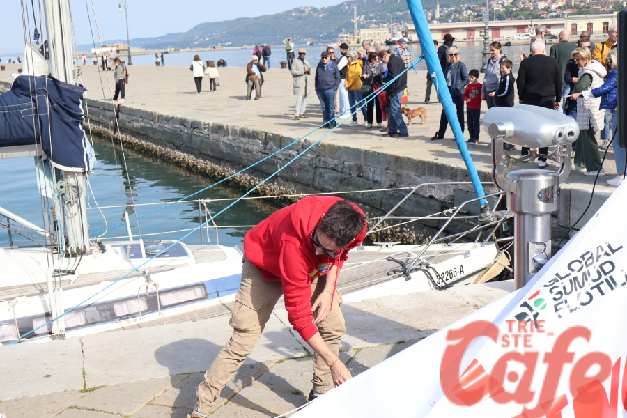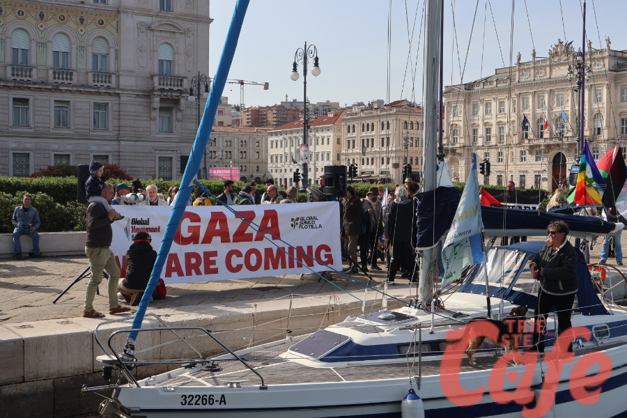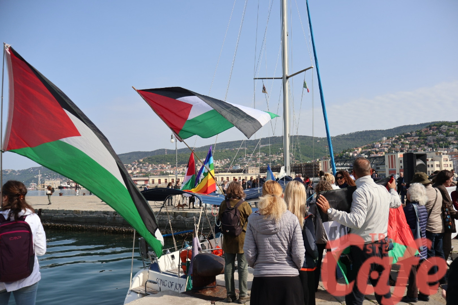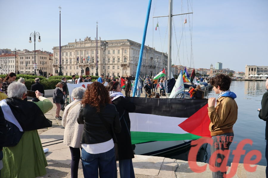 Circa 200 triestini si sono ritrovati all’inizio del Molo Audace per partecipare a un’iniziativa pubblica legata alla missione internazionale diretta verso Gaza.