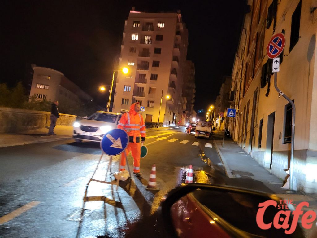 Trieste, perdita d’acqua in via Molino a Vento: strada chiusa per lavori urgenti