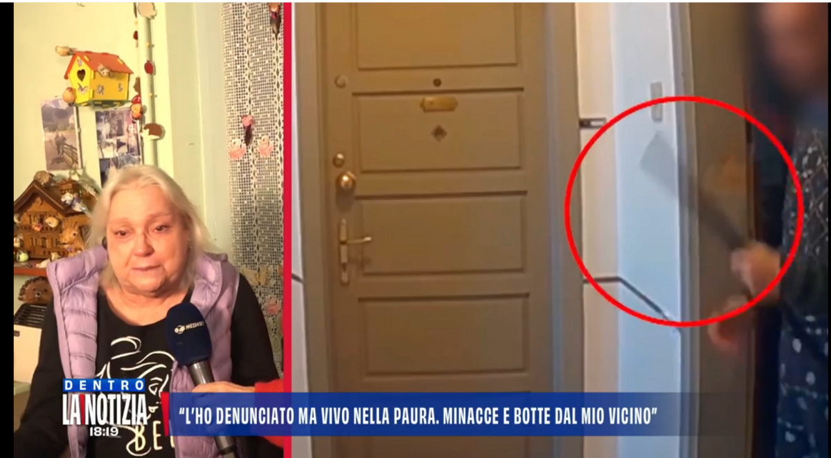 Nel servizio si fa riferimento a denunce e atti depositati in tribunale, nei quali sarebbero riportate accuse di minacce, molestie, lesioni personali e diffamazione. Al centro della vicenda giudiziaria vi sarebbe un uomo di 42 anni, vicino di pianerottolo della donna, attualmente imputato in un processo di primo grado.