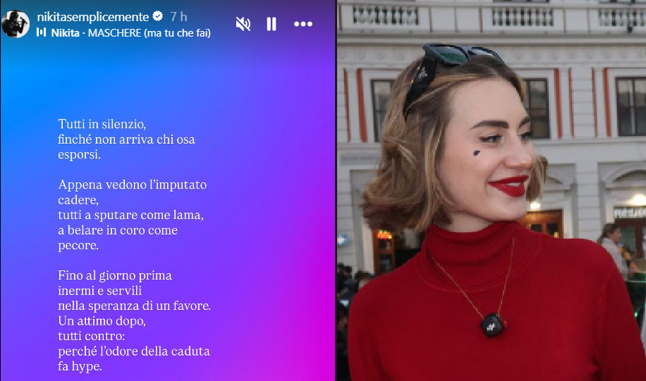 Un testo breve, incisivo, affidato a una storia Instagram. Ma dietro quelle parole si intravede molto di più. Il messaggio pubblicato da Nikita Pelizon, triestina e vincitrice del Grande Fratello Vip, appare con ogni probabilità legato al clima mediatico che in questi giorni sta investendo Alfonso Signorini e il format che ha segnato profondamente il suo percorso pubblico.