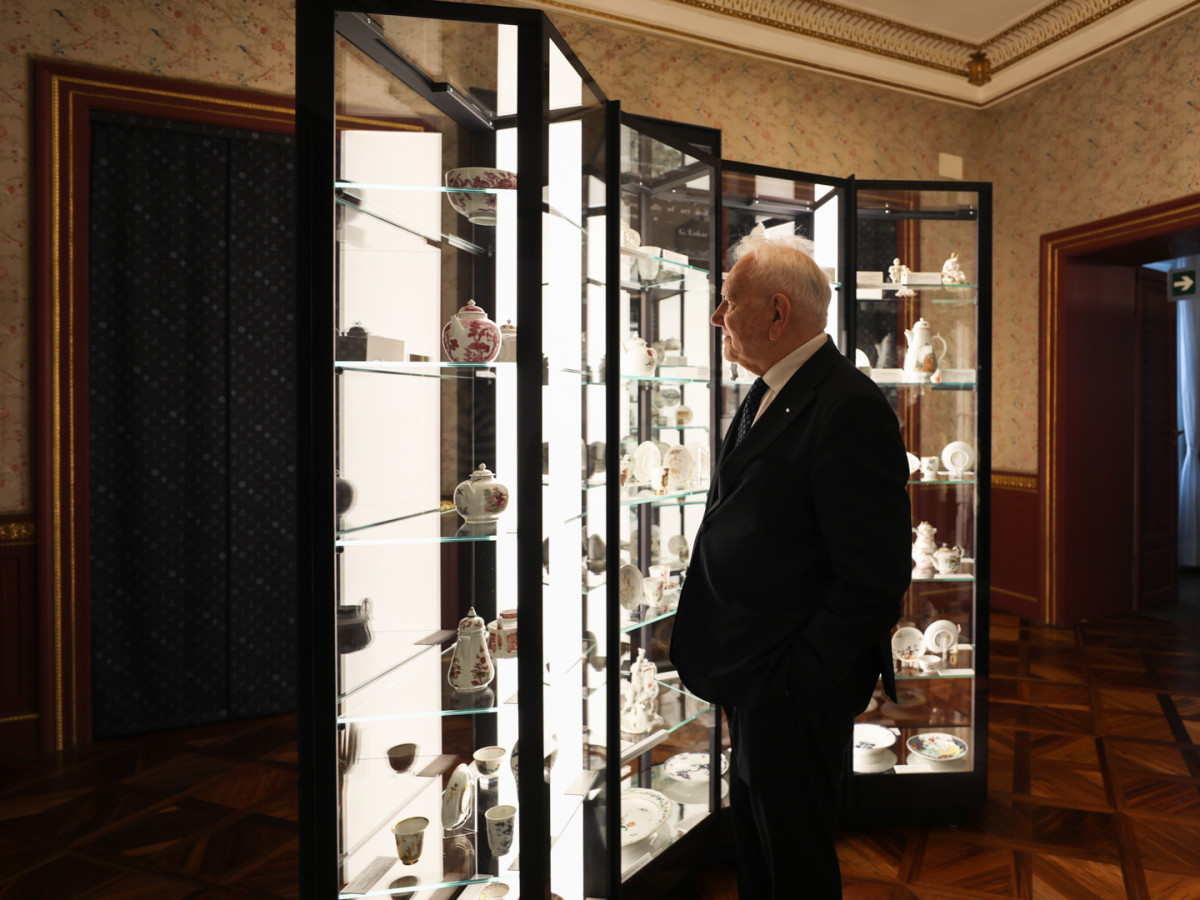 Contestualmente, nell’addentrarsi nel campo della porcellana italiana, di cui egli apprezza l’indipendenza stilistica e la mancanza di ripetitività nei decori, dedica una particolare attenzione alle fabbriche veneziane: il primo acquisto di porcellana italiana è infatti un piattino dell’armoniosa manifattura Vezzi di Venezia, che lo interessa per l’originale e tipicamente veneziana interpretazione degli stilemi della porcellana di Meissen e Vienna. Non mancano numerosi e significativi esemplari delle altre manifatture lagunari – la rarissima Hewelcke e l’elegante e variegata Cozzi – e di tutte le manifatture venete, anche meno note, e italiane: uno degli aspetti più rilevanti della raccolta è costituito dal corpus delle porcellane Ginori, con alcuni pezzi somiglianti proprio alla porcellana di Du Paquier.