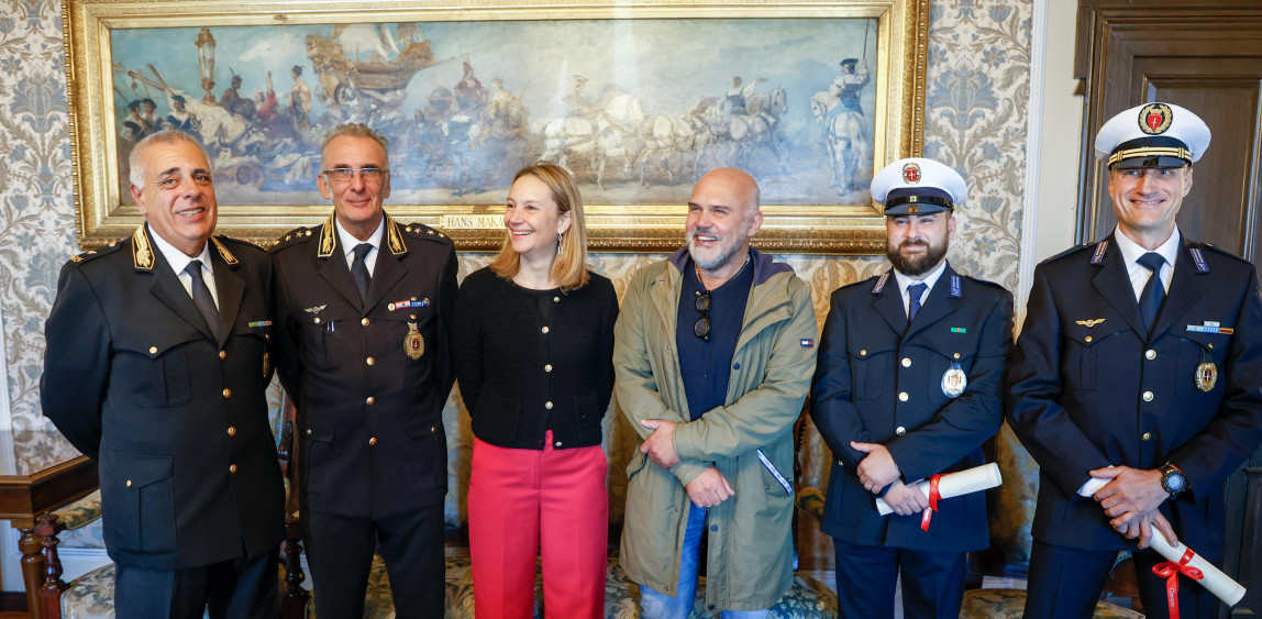Riconoscimento ufficiale questa mattina nel Salotto Azzurro del Municipio per due operatori della Polizia Locale di Trieste, premiati per l’indagine che ha portato all’identificazione del responsabile del danneggiamento di alcuni paletti reggi-catena in piazza Goldoni lo scorso giugno.