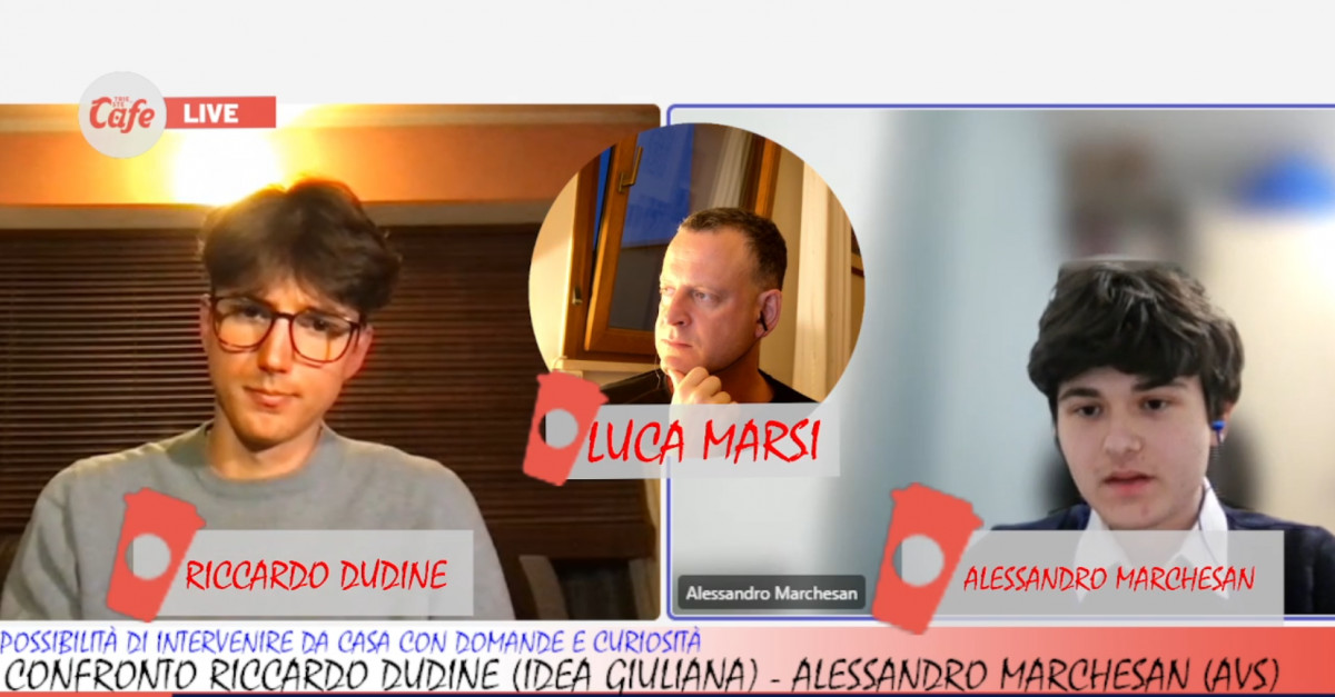 Nuovo appuntamento con “Giovani al voto”, il format di confronto dedicato alle nuove generazioni, condotto da Luca Marsi, che ha visto protagonisti Riccardo Dudine (Idea Giuliana) e Alessandro Marchesan (Alleanza Verdi e Sinistra).