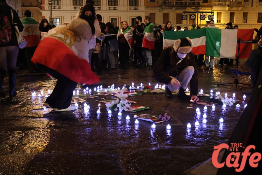 Le candele accese in piazza hanno rappresentato visivamente quel filo tra chi vive lontano e chi, secondo quanto espresso nel testo, subisce repressioni e violenze. “La nostra voce è la voce del popolo iraniano” è una delle frasi conclusive del documento, diventata simbolicamente il messaggio della serata triestina.