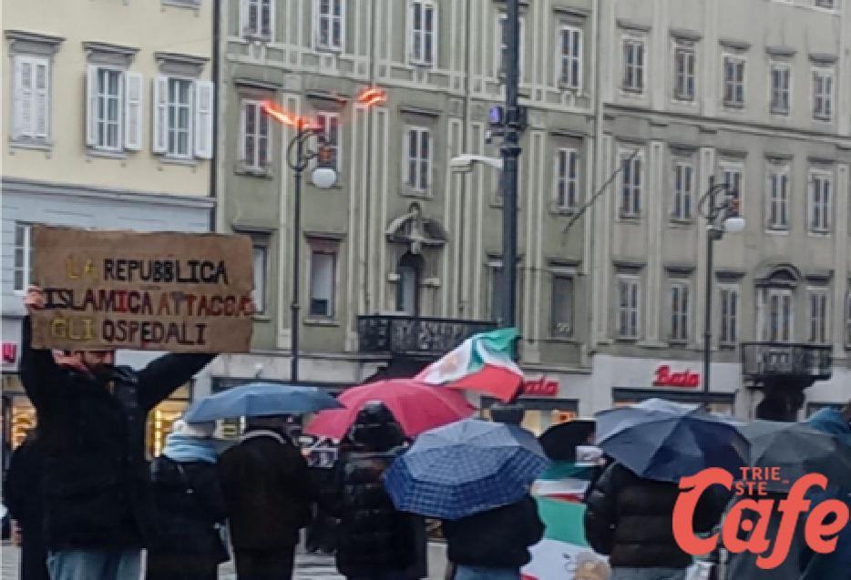 Nel pomeriggio di sabato 14 febbraio 2026, piazza della Borsa ha fatto da cornice a una manifestazione pro Iran promossa da studenti iraniani presenti a Trieste. Nonostante la pioggia e le condizioni meteo avverse, la partecipazione è stata significativa, con cittadini e curiosi che si sono fermati ad assistere all’iniziativa.