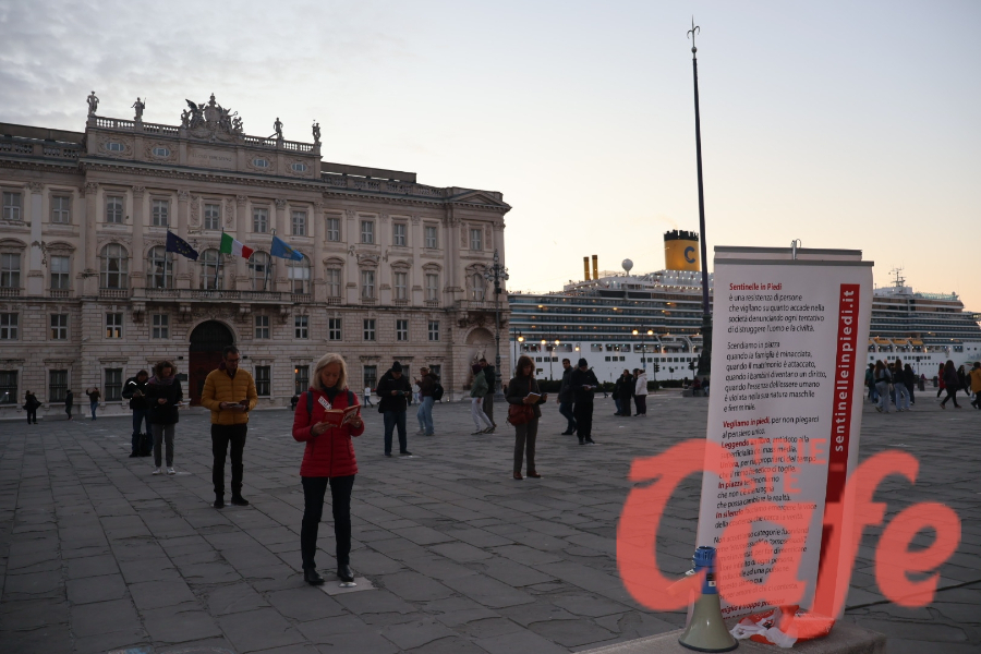 Una ventina di “sentinelle” in piedi a Piazza Unità: silenzio e veglia per la vita (VIDEO)