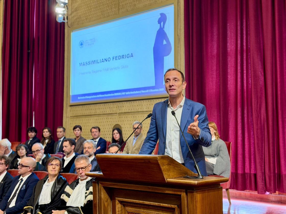 Nel corso del suo intervento il governatore Fedriga ha rivolto alla magnifica rettrice Donata Vianelli, alla sua prima