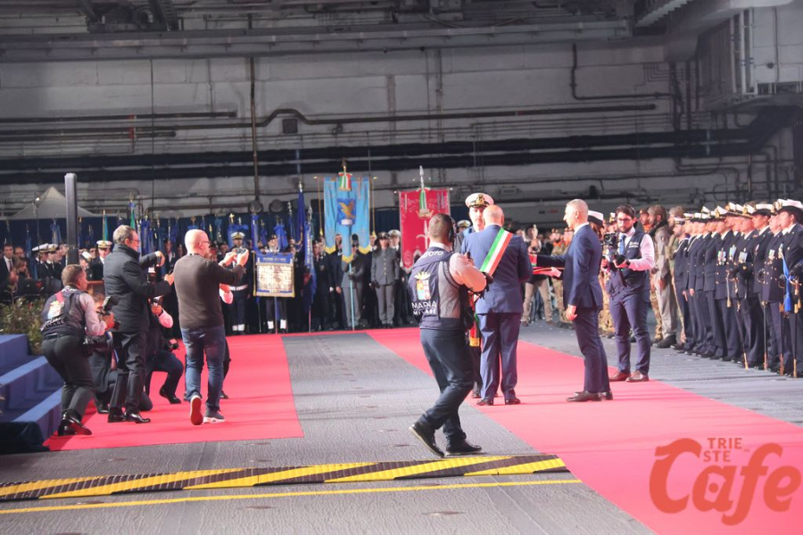 Nel giorno in cui la città celebra il 71° anniversario del ritorno all’Italia, il governatore del Friuli Venezia Giulia, Massimiliano Fedriga, ha partecipato alla cerimonia di consegna della Bandiera di Combattimento a Nave Trieste, la nuova ammiraglia della Marina Militare.