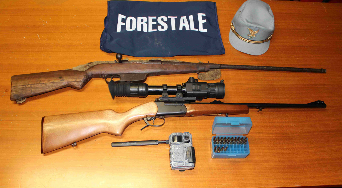 L’Autorità Giudiziaria ha delegato una perquisizione finalizzata alla ricerca di fonti di prova durante la quale sono stati sequestrati un fucile dotato di ottica per la visione notturna regolarmente detenuto, un fucile modificato e privo di matricola non denunciato all’Autorità di Pubblica Sicurezza e la foto trappola utile a raccogliere le immagini che documentavano la presenza di selvaggina.Sono state contestate violazioni connesse al reato di foraggiamento oltre a quelle amministrative per detenzione di reti da uccellagione e detenzione non idonea di cani in recinti di ridotte dimensioni.