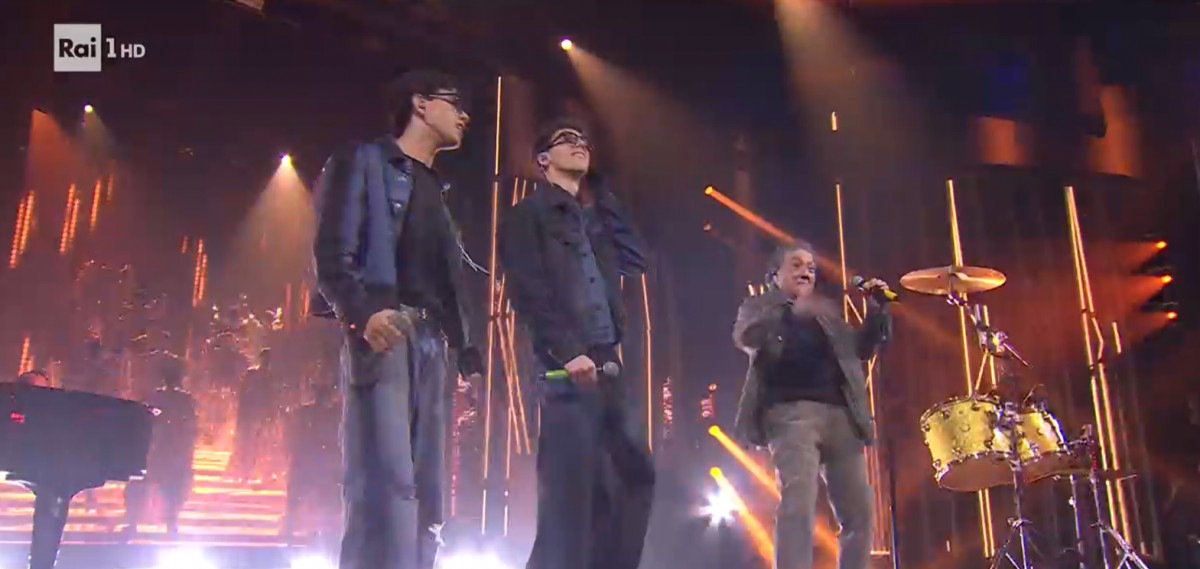 Il ritmo ipnotico della batteria, i ballerini, la botta di energia di un brano manifesto che stasera unisce generazioni diverse e trasforma l'Ariston in una discoteca: da una parte ci sono LDA e Aka7even, dall'altro Tullio De Piscopo, 80 anni appena compiuti, e il duetto a SANREMO è con Andamento Lento, che proprio al festival fu presentato il 24 febbraio 1988. "Tullio, Tullio", scandisce il pubblico dopo aver ballato in piedi, e LDA si commuove: "È tutto assurdo, grazie maestro". ì (ANSA). MAJ-CNZ ANSA